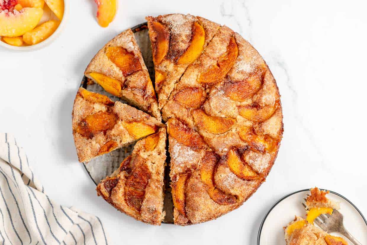 Peach kuchen is a soft cake topped with slices of fresh peach. It’s easy to make and works for breakfast, snack, or dessert. Serve it warm or at room temperature.