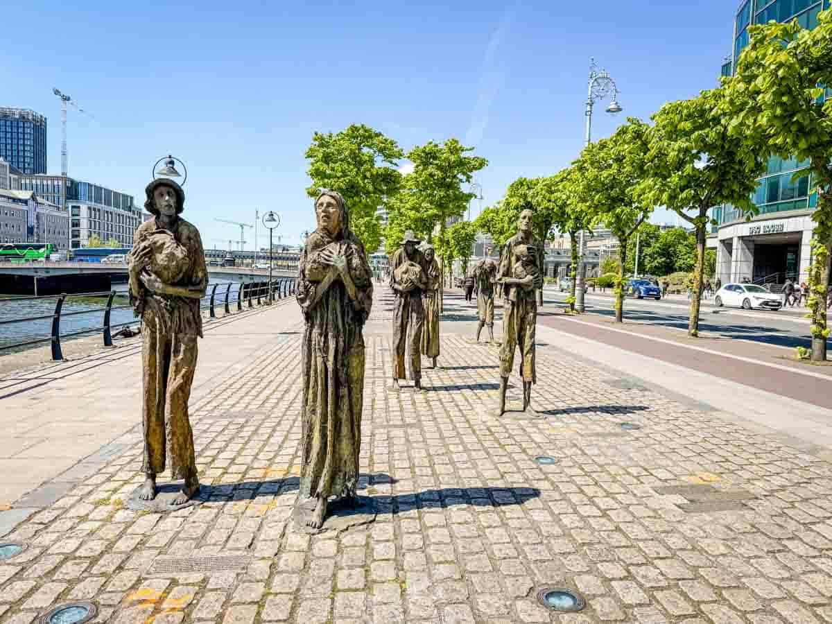 The Famine Memorial marks the end of the National Famine Way, a 165-kilometer trail retracing the path of thousands who walked from Roscommon to Dublin in 1847. Life-sized bronze sculptures of starving men, women and children stand along Dublin’s River Liffey, confronting passersby with the harsh reality of Ireland’s Great Famine. When I was in Dublin, we didn’t walk the whole trail, but we saw the memorial sculptures beside the river, and it was a poignant reminder of a crisis that forced millions to flee or face starvation.