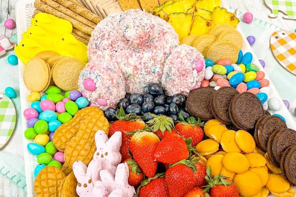 This Easter dessert charcuterie board turns fresh strawberries, blueberries, pineapple, Peeps, and Oreos into an impressive spread with zero baking required. The bunny cheeseball made from cream cheese, white chocolate chips, and strawberry cake mix steals the show while staying playful and fun. It’s easy to assemble and offers a mix of flavors and textures that add a festive touch to your holiday. Coating the cheeseball in shredded coconut and decorating with pink M&Ms makes it Instagram-worthy without the oven heat.