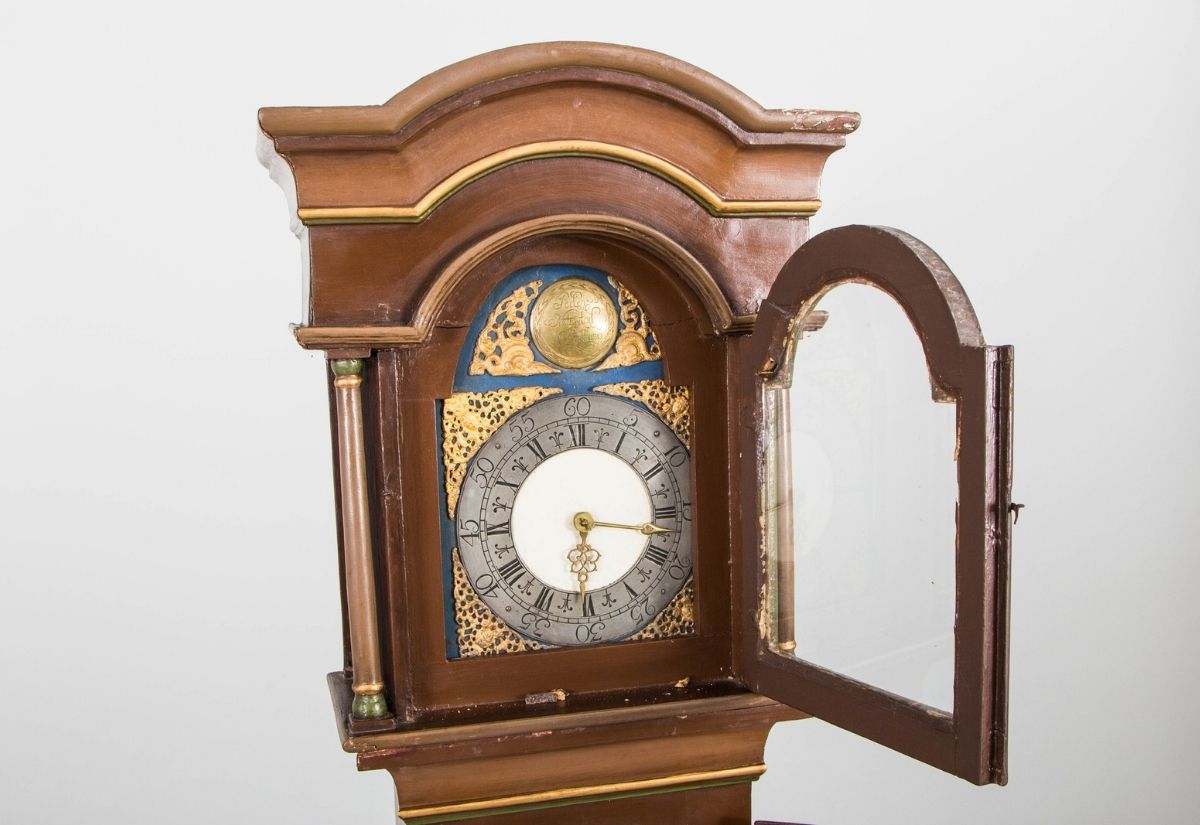 Examine the face, case and even the screws for clues about the clock’s origins. Hand-painted numerals, delicately carved wood, dovetail joints and original maker’s marks suggest careful, intentional craftsmanship. These features distinguish older, handmade clocks from mass-produced 20th-century versions.